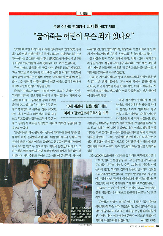 그는 2000년 12월에도 바그다드 등 이라크 전역에 모바일 네트워크, 인터넷 통신망 등 유, 무선 광통신 네트워크를 구축하는 대규모 사업을 수주, 그야말로 세상을 깜짝 놀라게 했다.